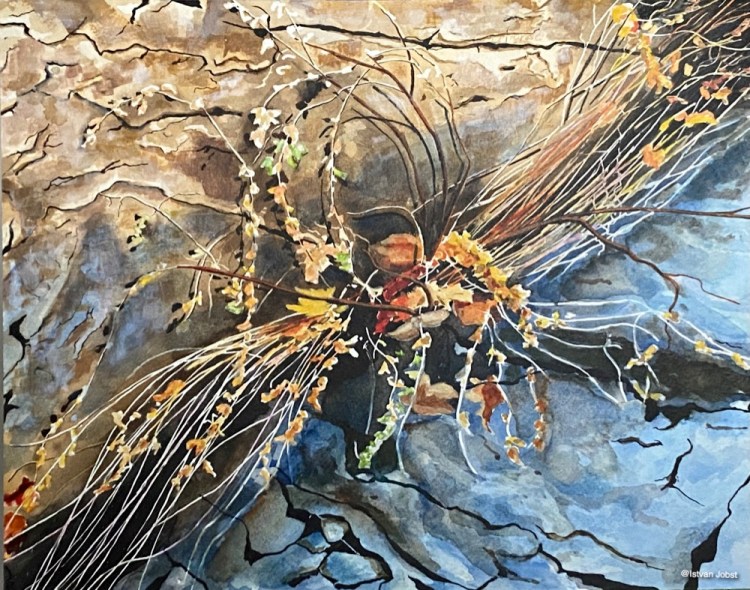 In Between – Watercolour, 11×14 on 140 lb Watercolour paper mounted 3/4 inch cradle board – $180