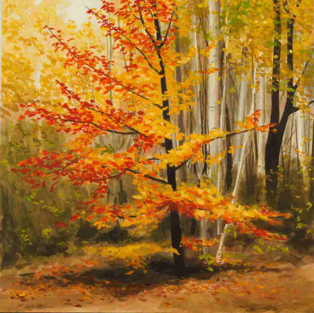 Fall Colours, Lac Philippe – Acrylic, 28×22 on gallery wrap – $680