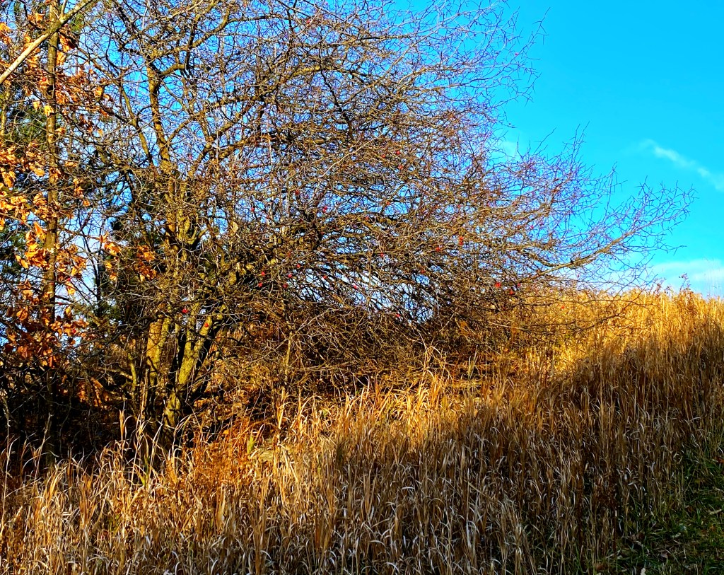 The cold days are more frequent than the warm now. But when the wind abates, there’s still warmth from the sun this early in the season. The snow will melt again before the holidays. Everything is quiet now.
