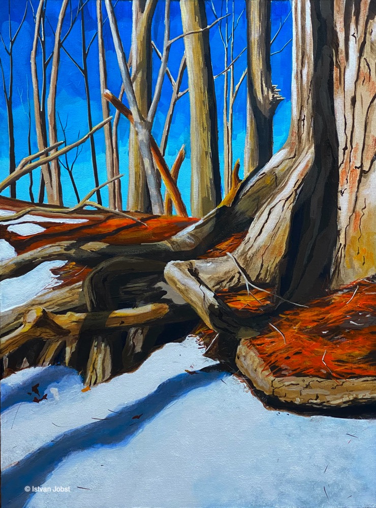 Rockliffe Pines, Early Spring – Acrylic, 18×24 on gallery wrap – $480